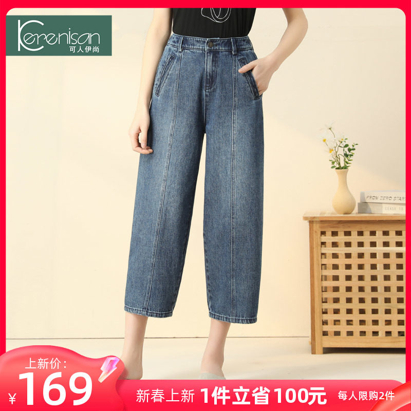 宽松牛仔裤女哈伦裤2024春装新款防掉色萝卜裤高腰灯笼裤九分裤子