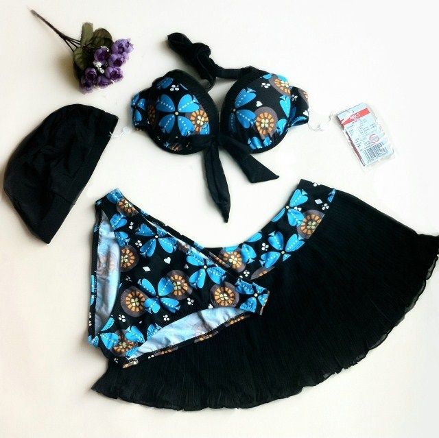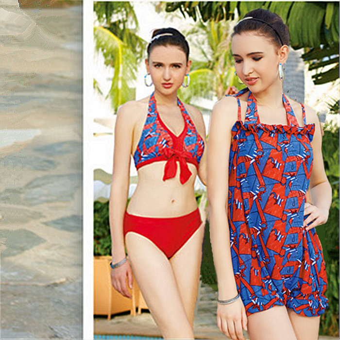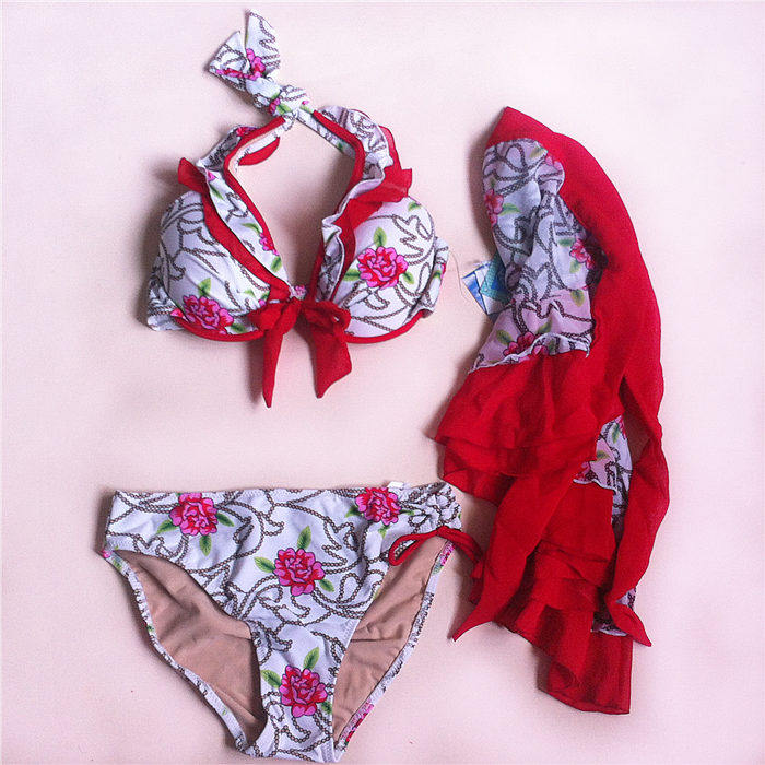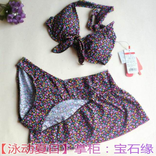 清仓正品保日达钢托聚拢碎花比基尼小胸泳衣女三件套裙式1217315