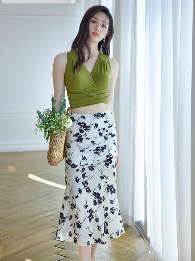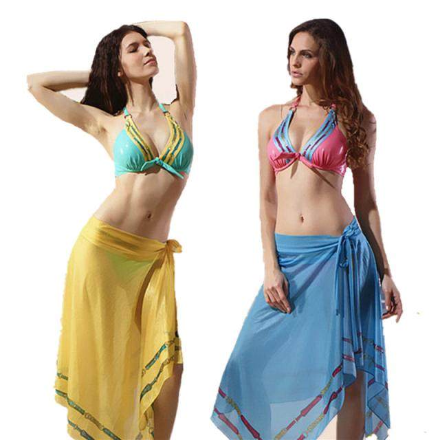 2022新款专柜号手品牌带胸垫性感比基尼裹裙纱巾裙式三件套度假风