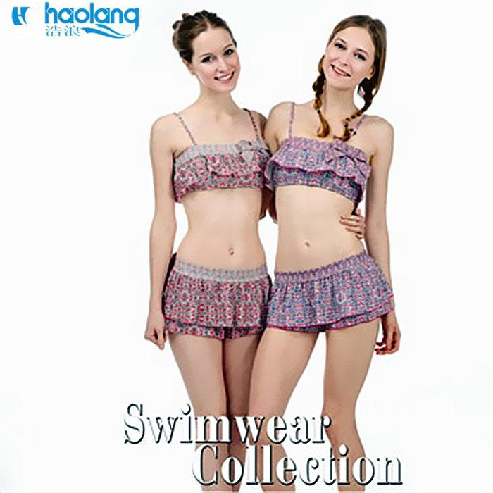 L码亏本清仓专柜正品浩浪品牌泳衣女裙裤抹胸比基尼田园碎花2202