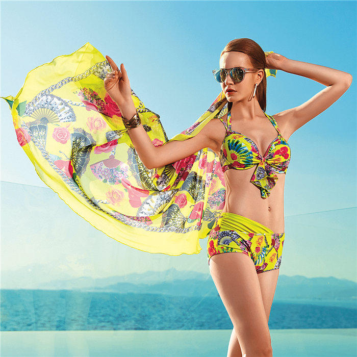 清仓正品号手钢托聚拢性感泳衣女比基尼三件套纱巾沙滩海边泡温泉