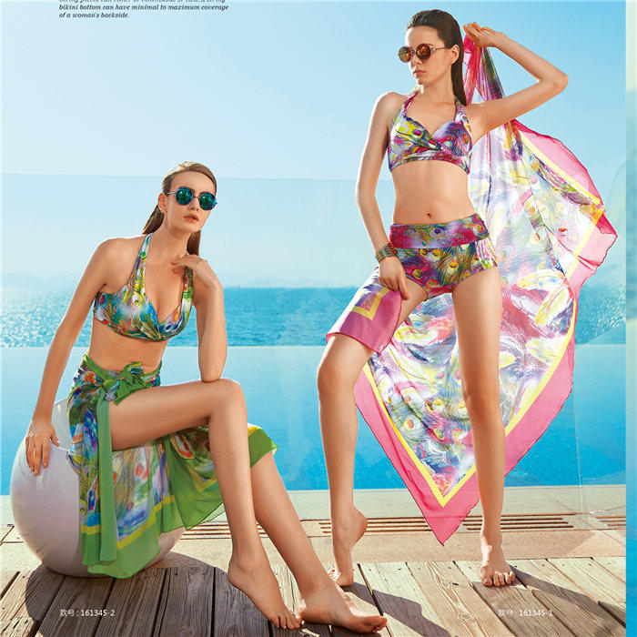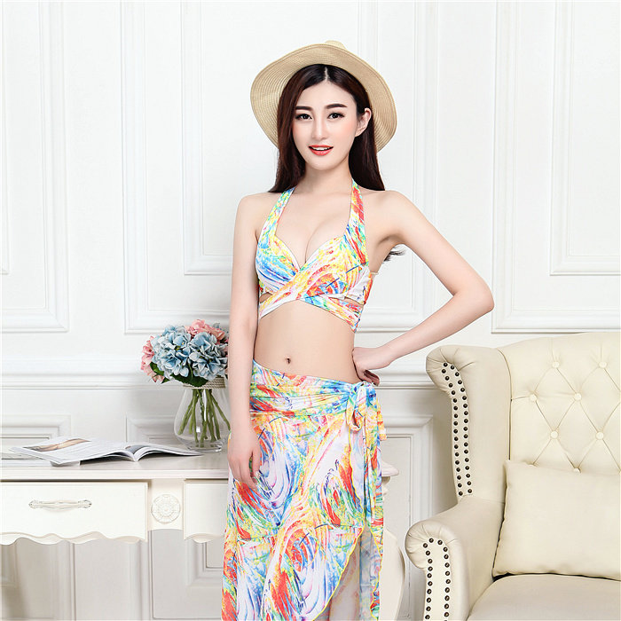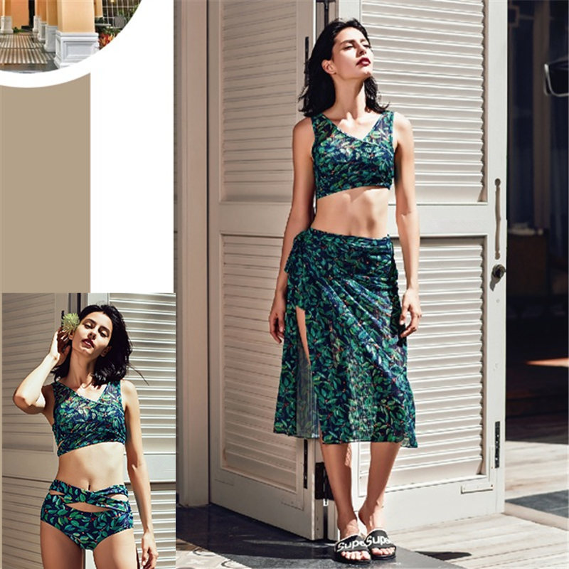 新款号手正品聚拢显瘦分体性感比基尼泳装三件套纱裙罩衫沙滩度假