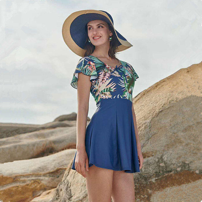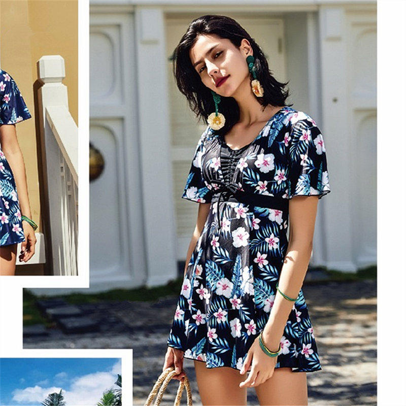 2022号手新款短袖露背带胸垫大胸休闲温泉裙式品牌泳衣女大码胖mm