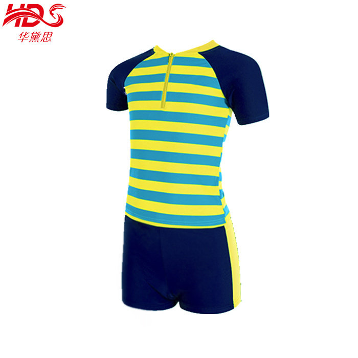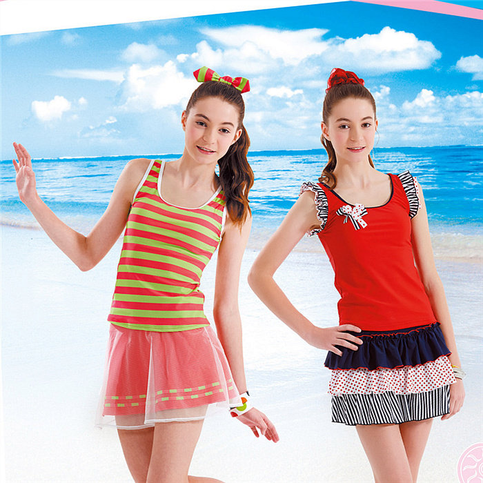 专柜正品华黛思品牌海军风条纹女孩中大童学生少女分体保守型泳衣