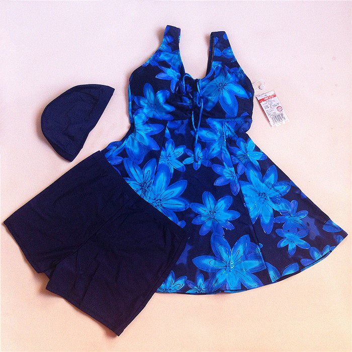 新款号手专柜品牌连体平角裤时尚保守显瘦妈妈健身游泳衣女大码