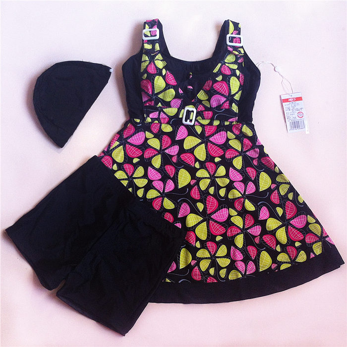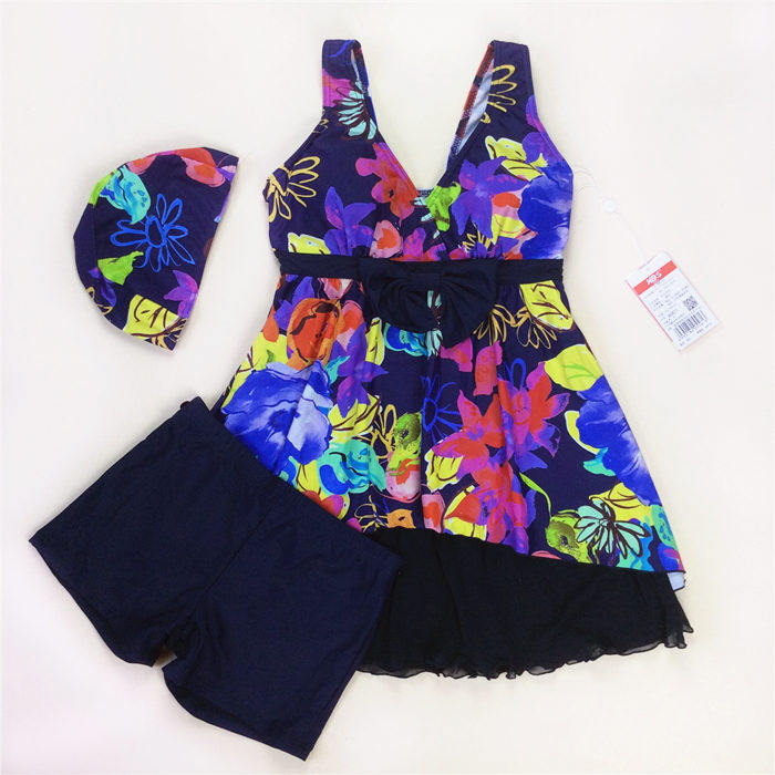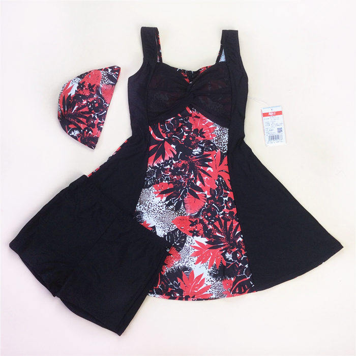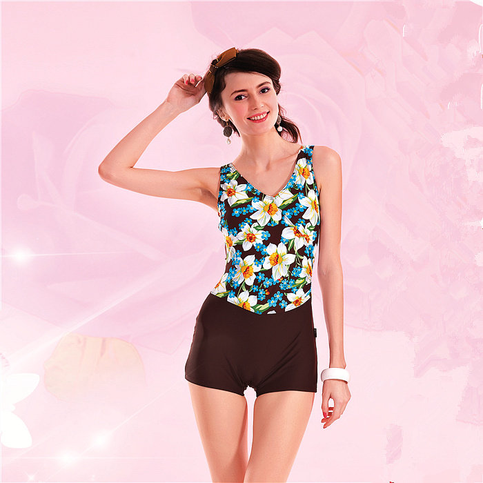 断码清仓华黛思品牌专柜正品连体平角裤保守大码时尚温泉女士泳衣