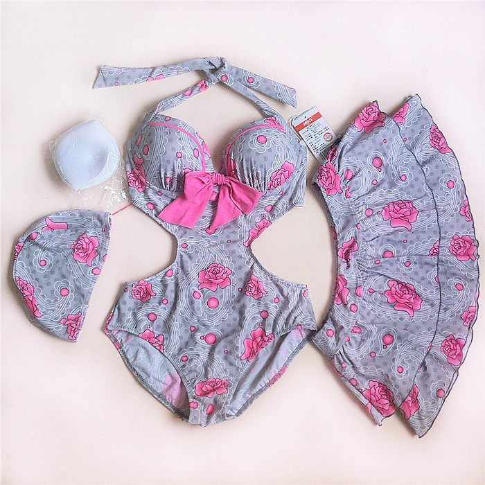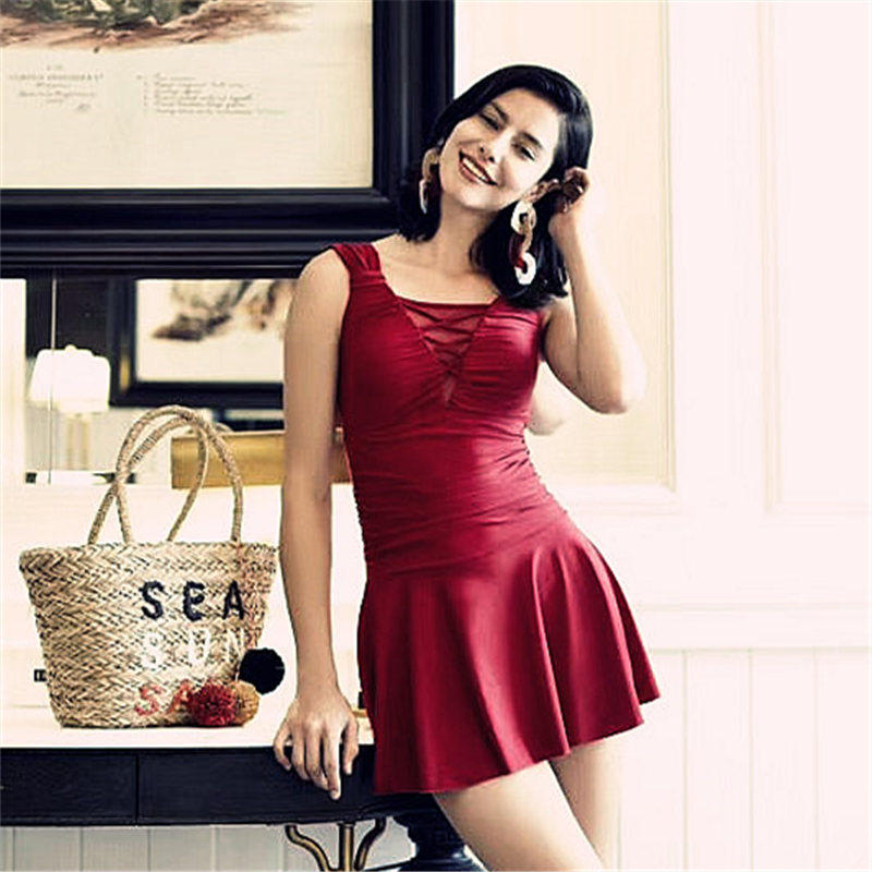 断码清库存正品号手品牌钢托聚小胸泳衣女纯色修身裙式连体平角裤