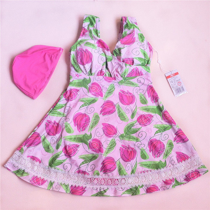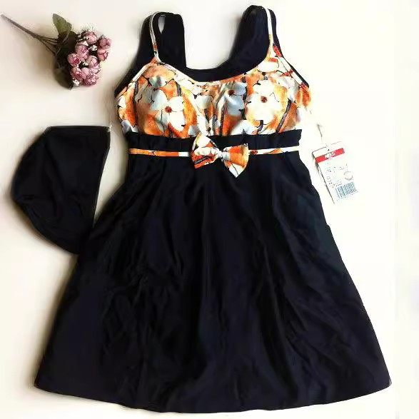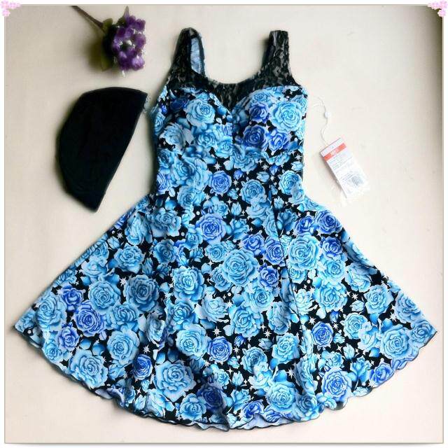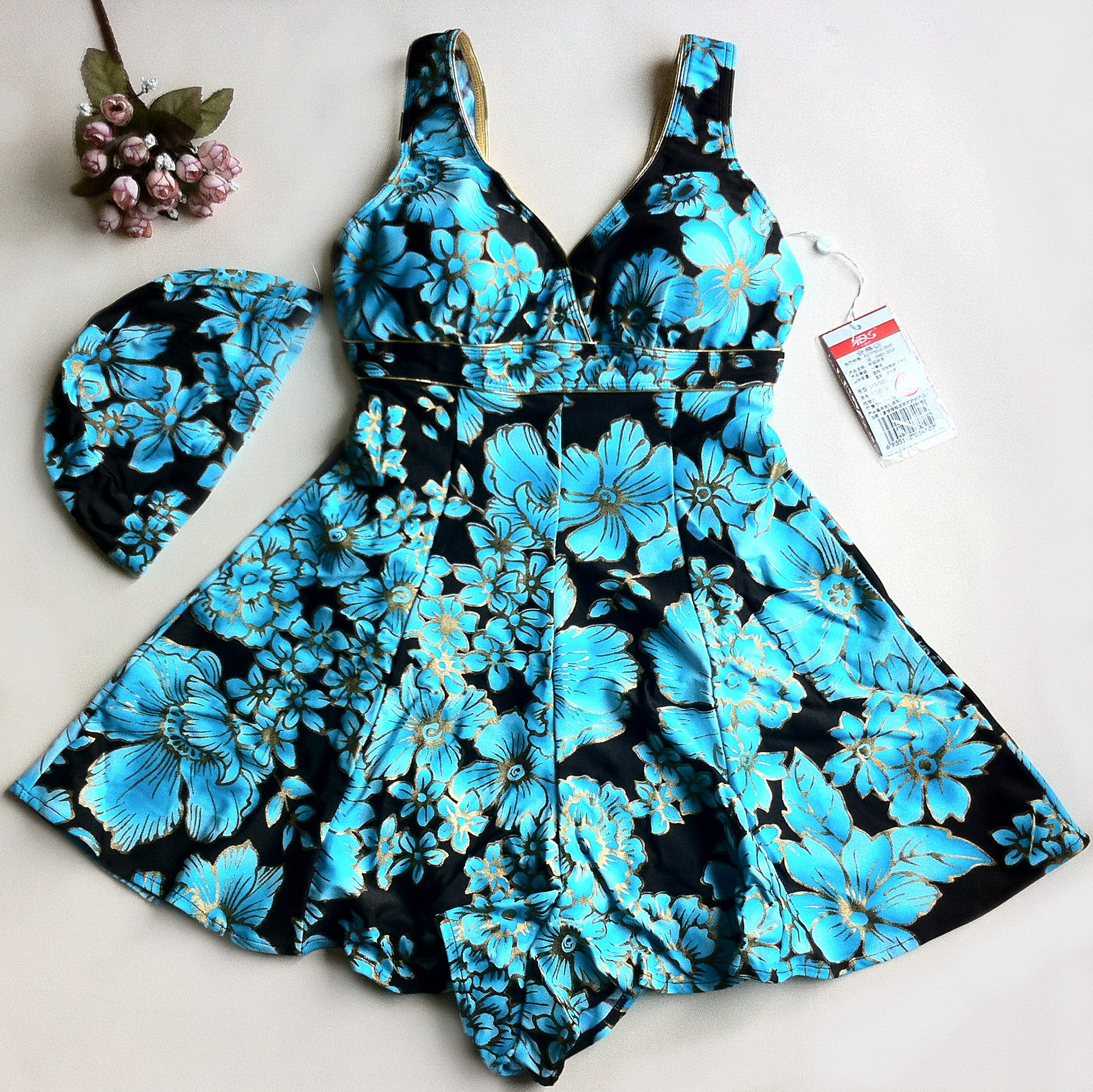 断码清仓专柜正品号手泳衣女大码显瘦聚拢钢托连体裙式平角泡温泉