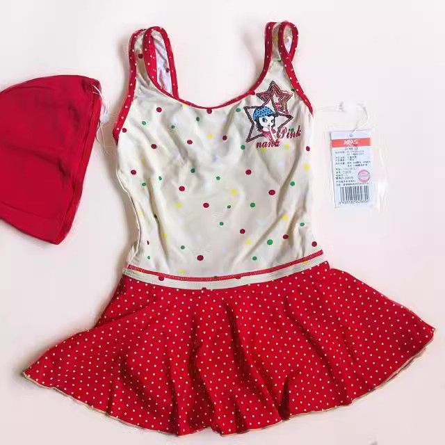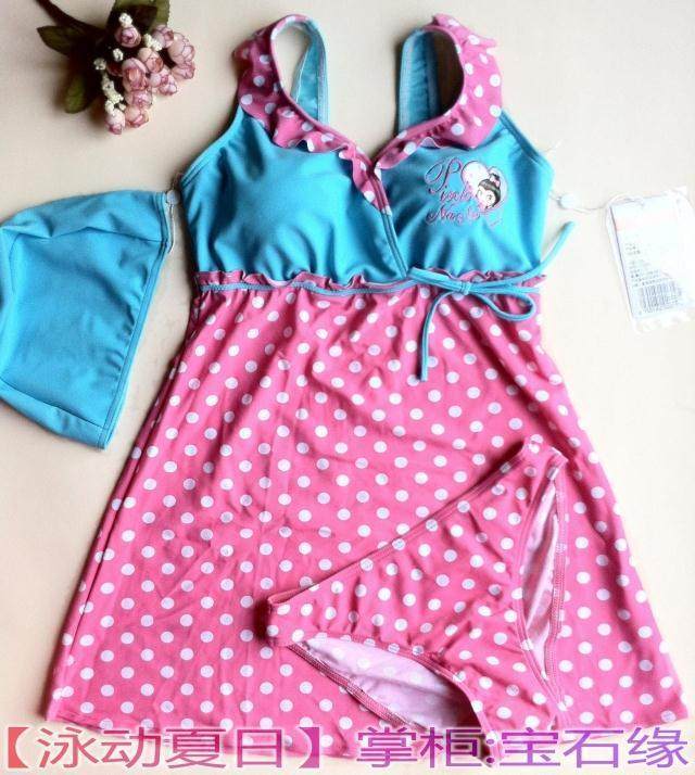 清仓专柜正品华黛思品牌甜美可爱波点连体裙式女童儿童泳衣72602