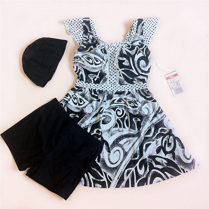 欧美黑白波普花色显瘦裙式平角裤正品华黛思品牌泳衣女加大码胖mm