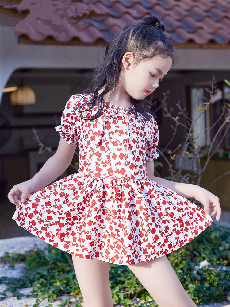 2022新款号手正品儿童泳衣女童孩子宝宝大童学生短袖连体裙平角裤