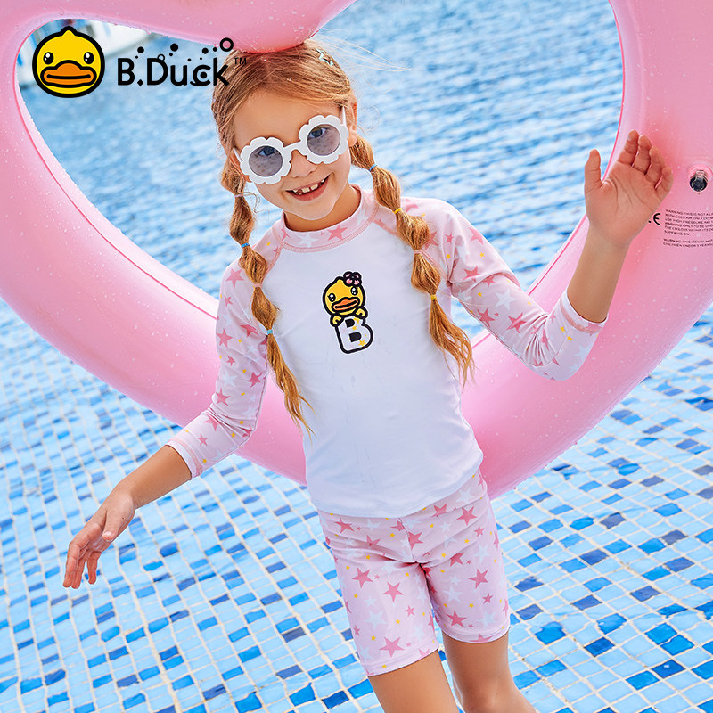 【清仓款】B.Duck小黄鸭女童游泳衣儿童分体长袖小女孩宝宝中大童