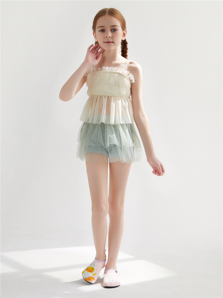 新款品牌正品英发短袖遮背防晒五分裤儿童连体泳衣小女孩子中大童