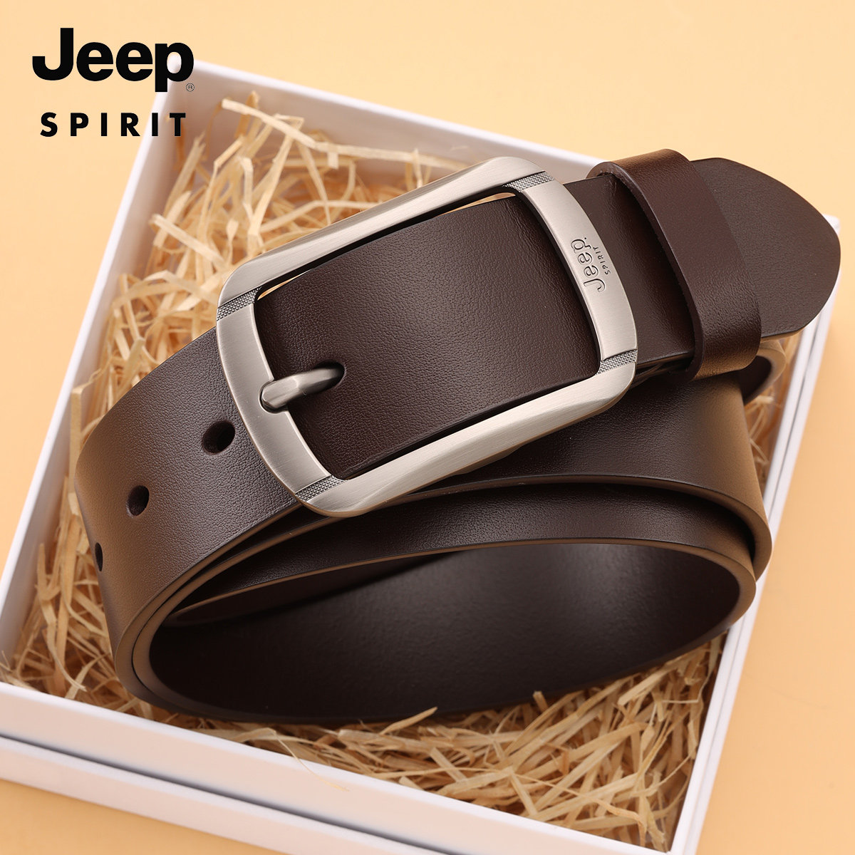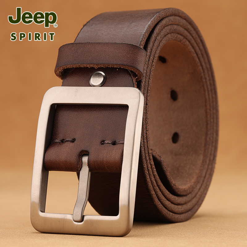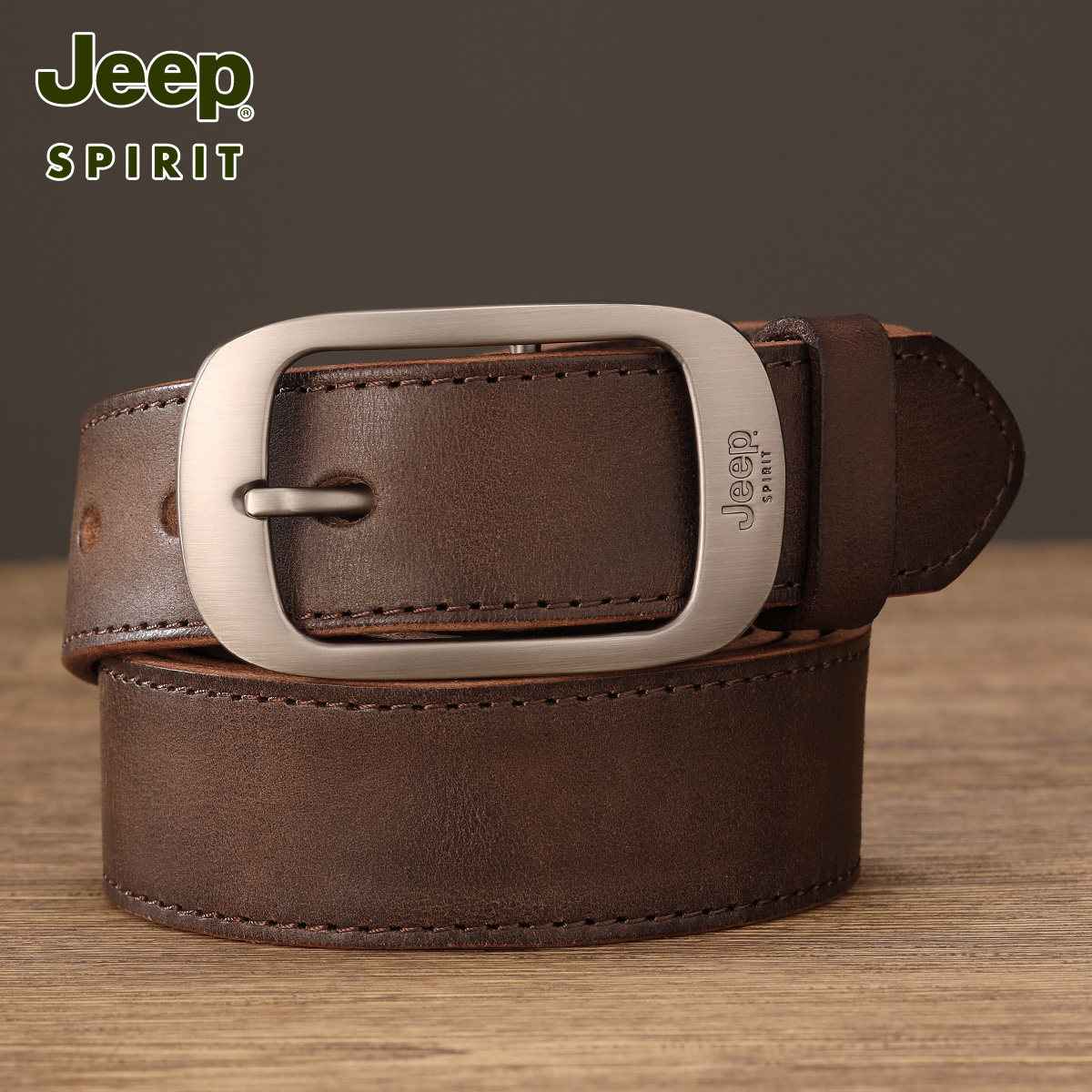 jeep吉普头层牛皮皮带男真皮青年腰带休闲针扣男纯手工牛仔裤腰带