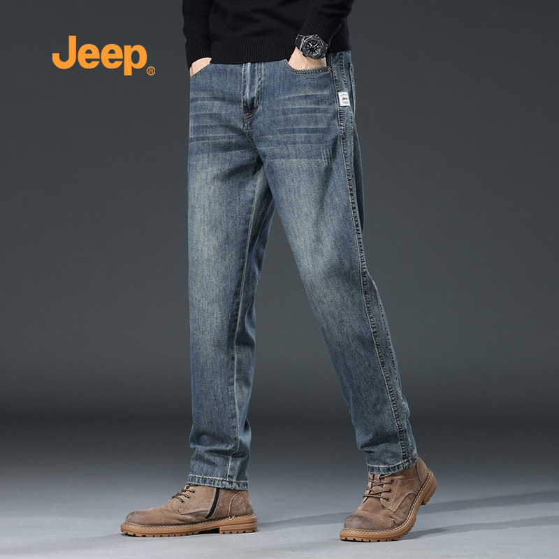 jeep吉普牛仔裤男秋冬季宽松直筒加绒大码男士弹力长裤子休闲百搭