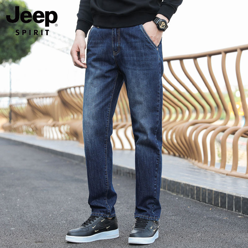 JEEP吉普牛仔裤男春秋款直筒2023年新款中年大码冬季男士休闲长裤