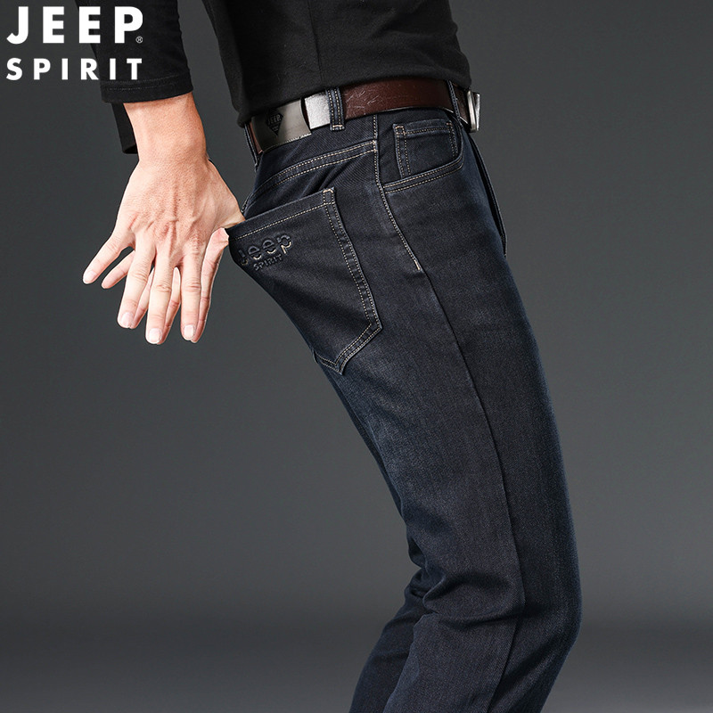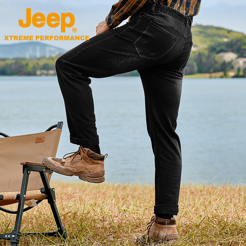 Jeep吉普时尚直筒修身牛仔裤男士舒适亲肤休闲裤户外防风保暖长裤