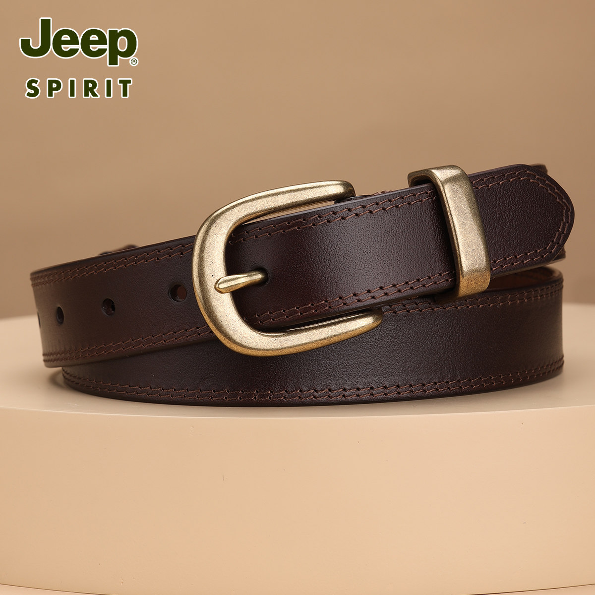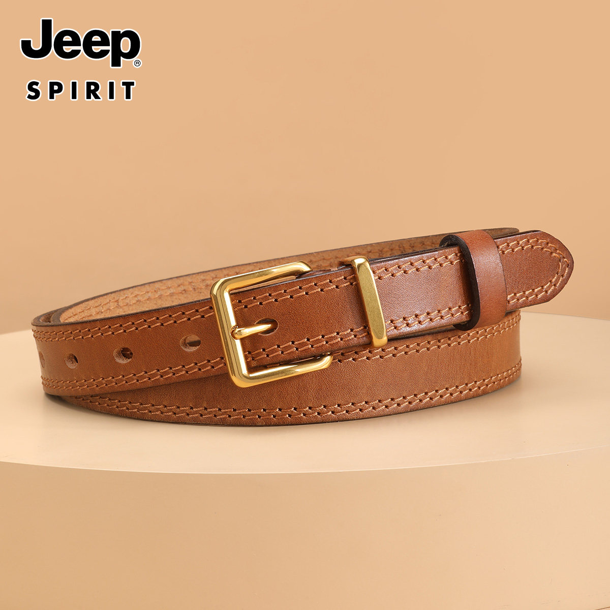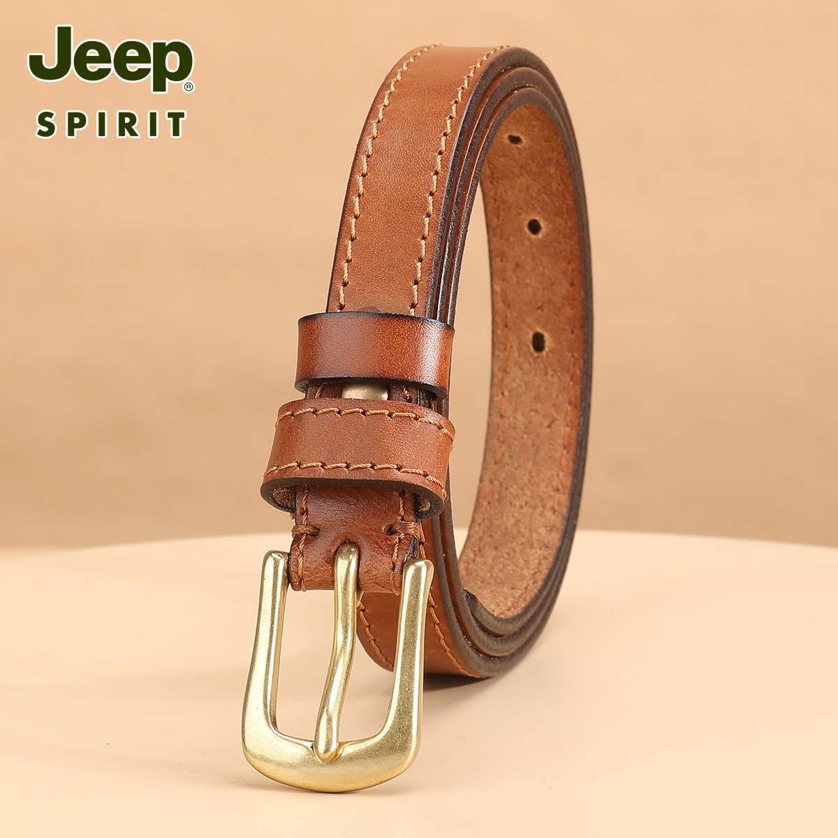 JEEP复古女士腰带真皮休闲百搭牛仔裤腰带潮铜头层牛皮带软皮粗线