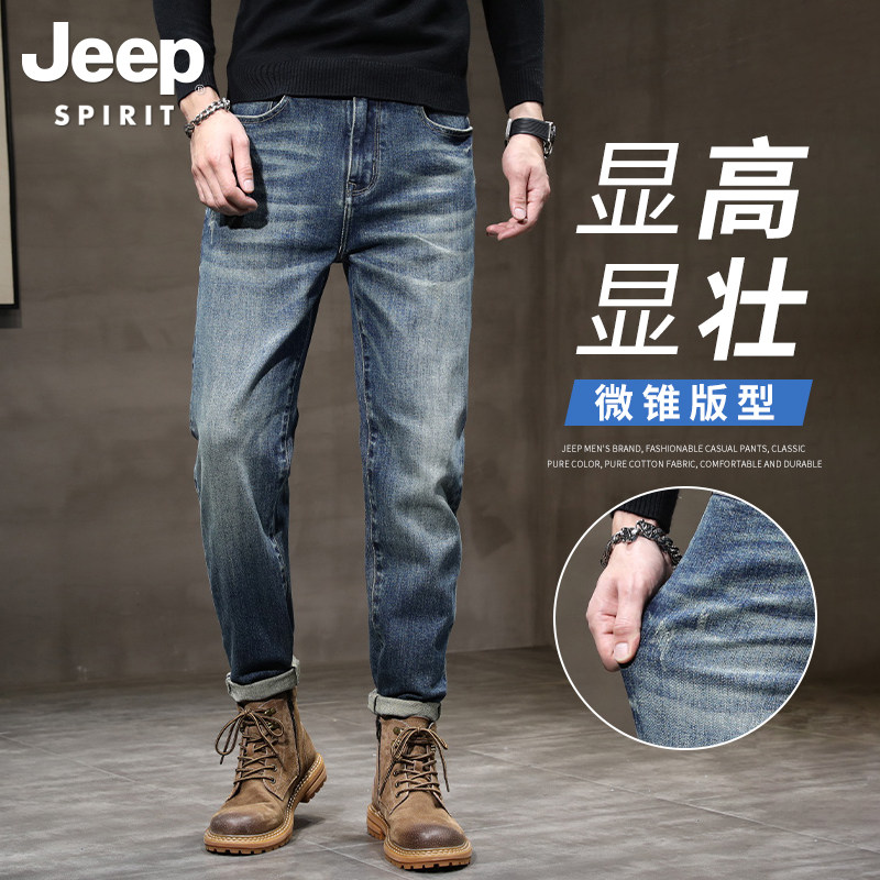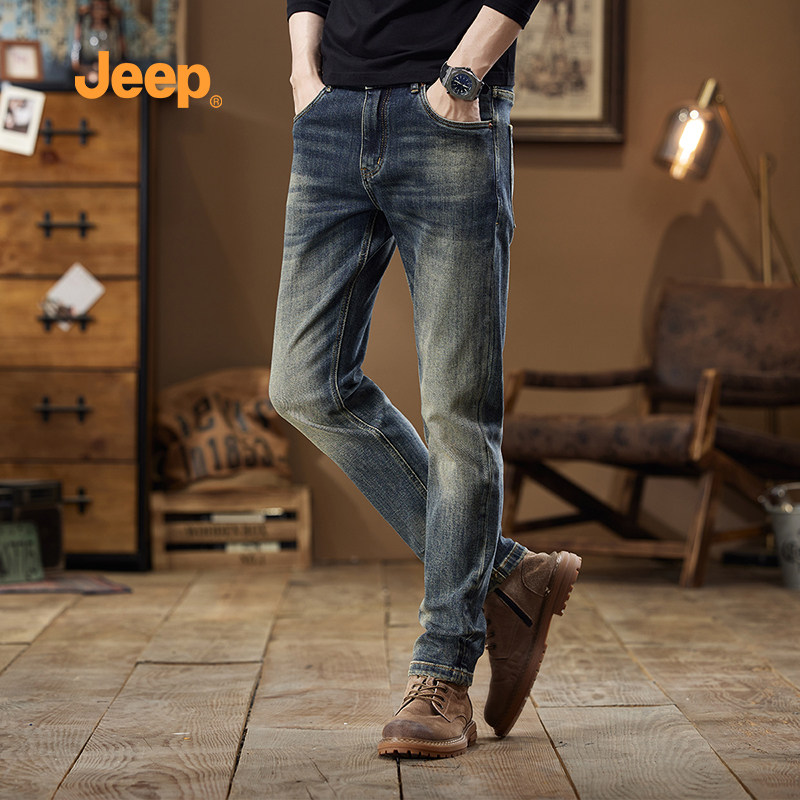 JEEP吉普复古牛仔裤男士2024春季新款修身男裤痞帅休闲百搭长裤男