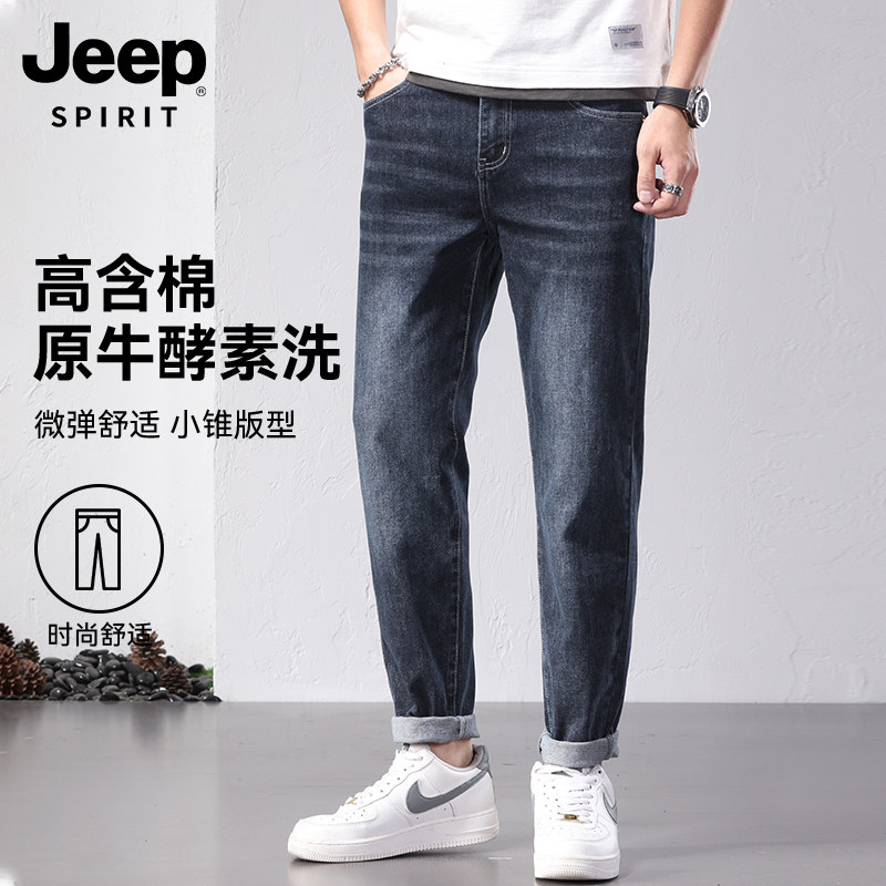 jeep吉普美式复古男士牛仔裤春秋新款微喇小脚九分高端痞帅长裤子