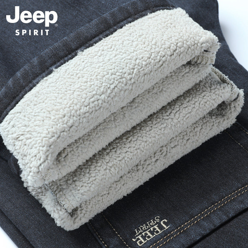 Jeep吉普秋冬季加绒加厚牛仔裤男士大码裤子宽松直筒羊羔绒长裤子