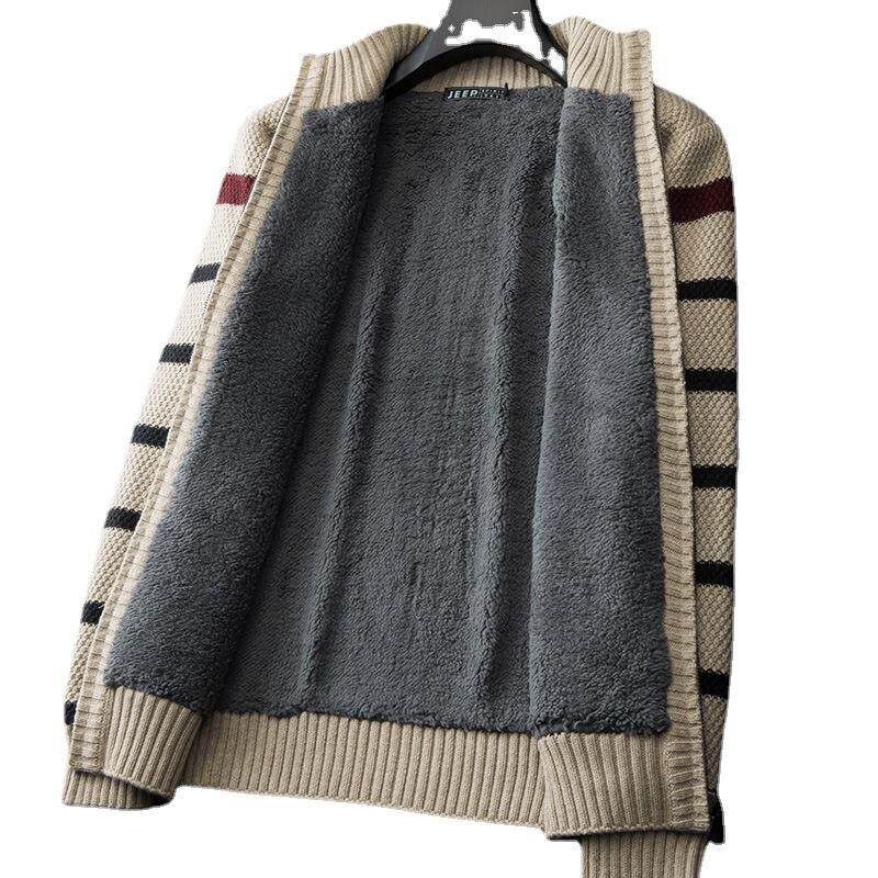 JEEP吉普秋冬新品加绒毛衣男士保暖针织衫立领开衫卫衣加厚羊毛衫