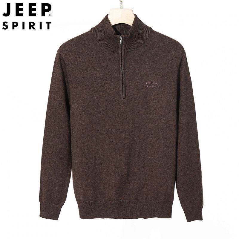 Jeep吉普半拉链毛衣男秋冬款翻领保暖打底衫男士内搭羊毛衫衫外套