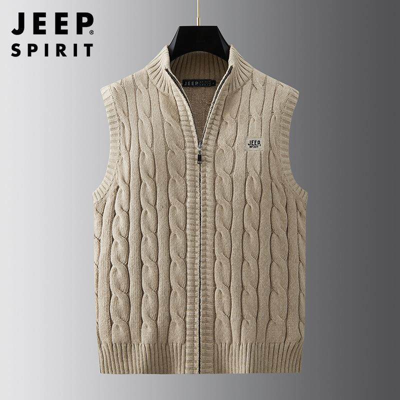 JEEP吉普秋冬新品马甲常规薄款羊毛衫背心男中年保暖无袖针织坎肩