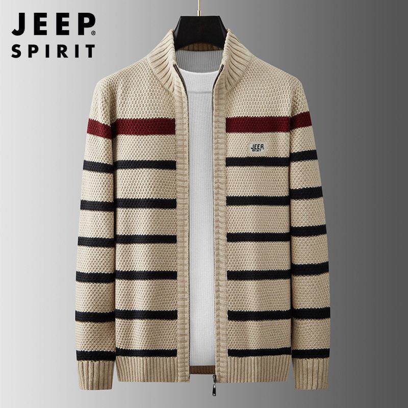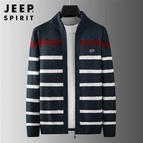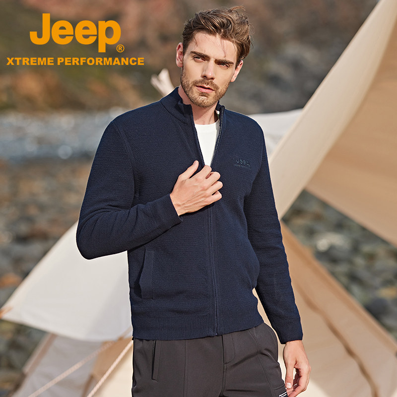 JEEP吉普针织衫秋季男立领卫衣保暖针织开衫羊毛宽松休闲外套2022