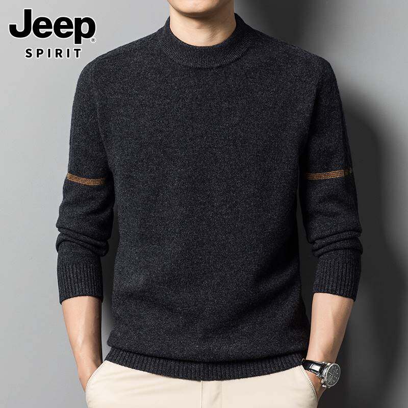 Jeep吉普男士羊毛衫冬季潮流高端商务纯色针织打底衫圆领毛衣男款