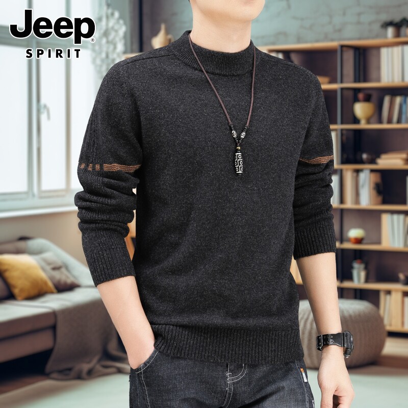 Jeep吉普毛衣男士冬季纯羊毛加厚保暖线衣潮流半高领休闲针织衫男