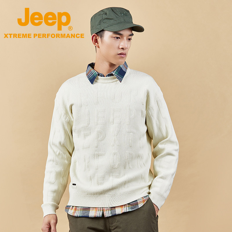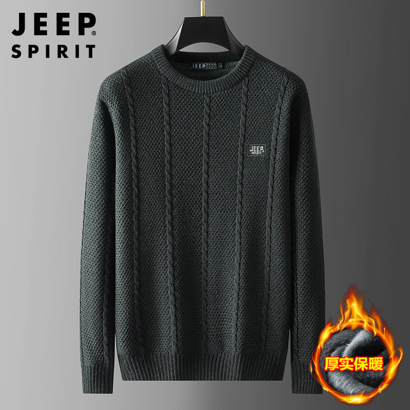 JEEP吉普2021秋冬新款男士休闲保暖羊毛衫美式复古圆领针织衫P214