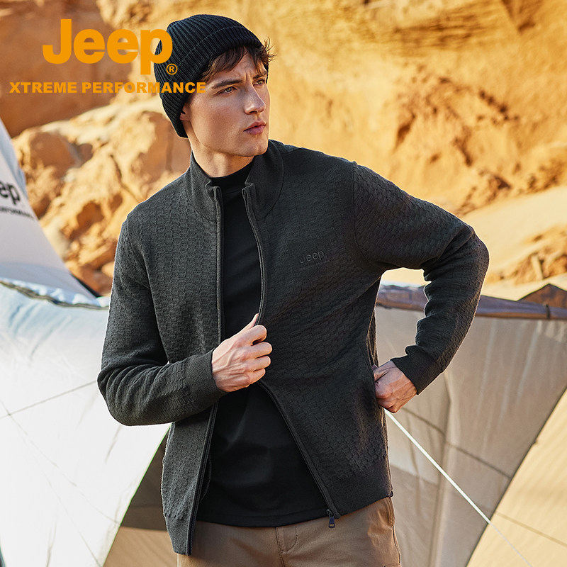 Jeep吉普早秋男士羊毛针织衫户外宽松休闲外套亲肤保暖百搭上衣潮