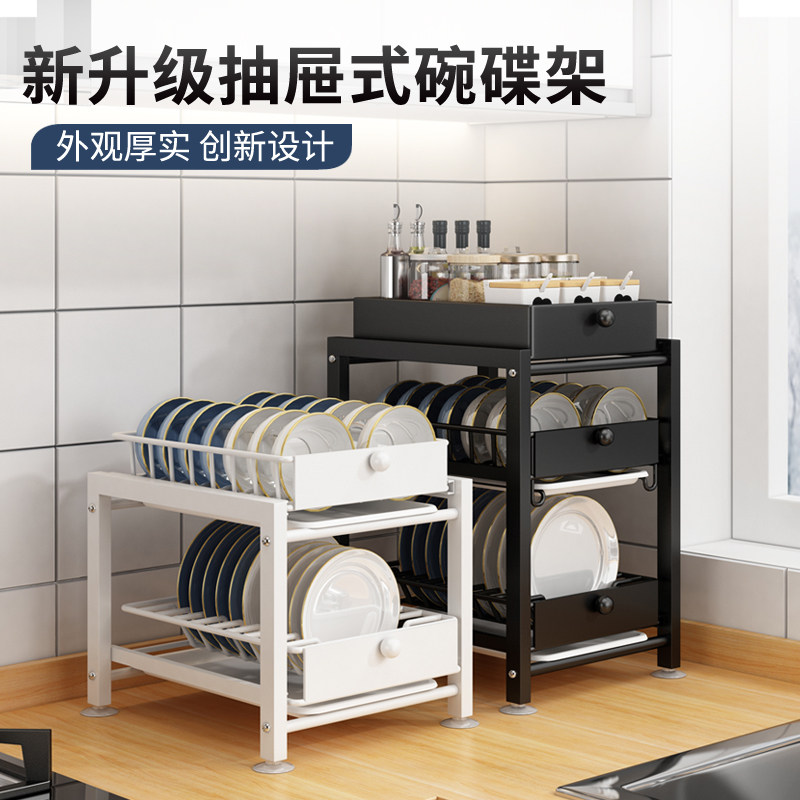 厨房置物架微波炉烤箱架子家用双层台面空气炸锅电饭锅收纳架子