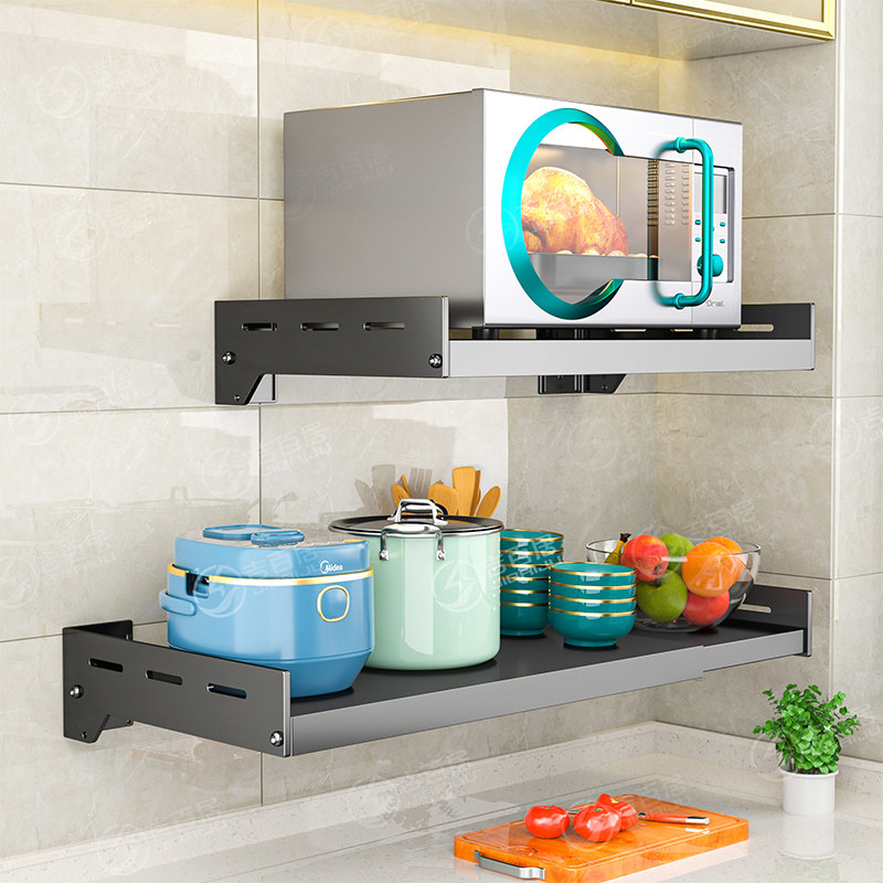 免打孔不锈钢厨房微波炉置物架壁挂式电烤箱架子可伸缩家用支撑架