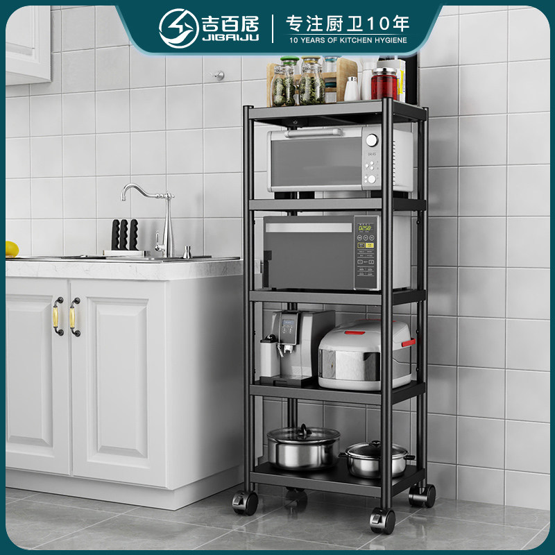 不锈钢厨房置物架落地式多层微波炉架子角落夹缝收纳储物架放烤箱
