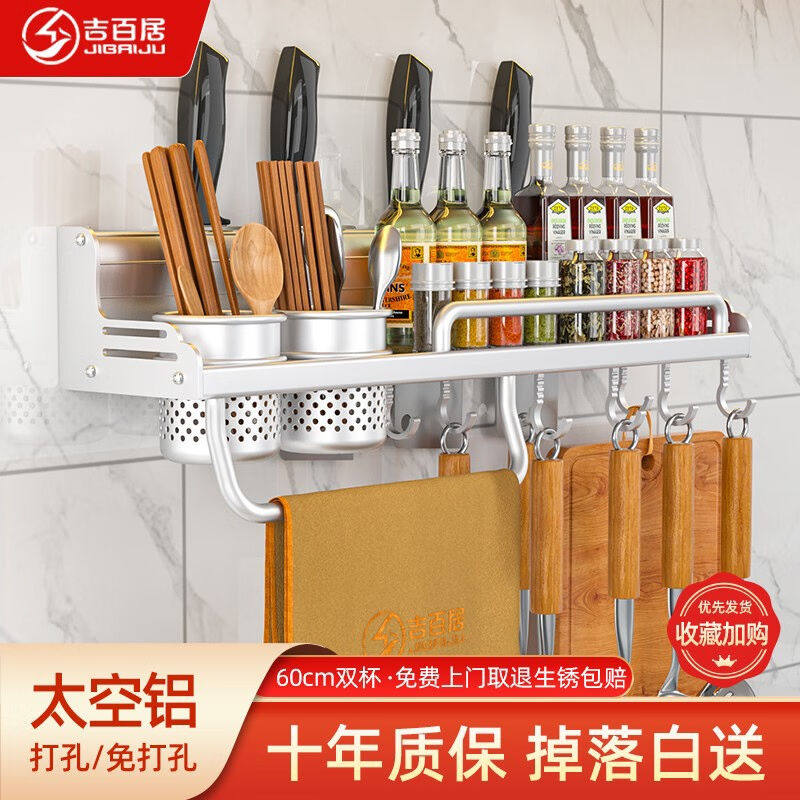 吉百居(jibaiju)厨房置物架壁挂免打孔调料架刀架筷子筒厨房用