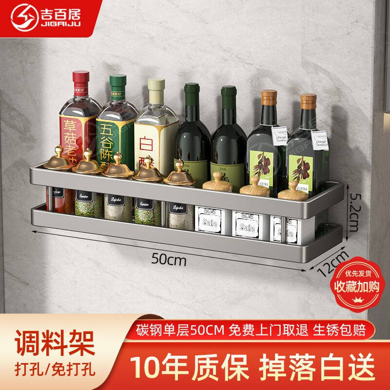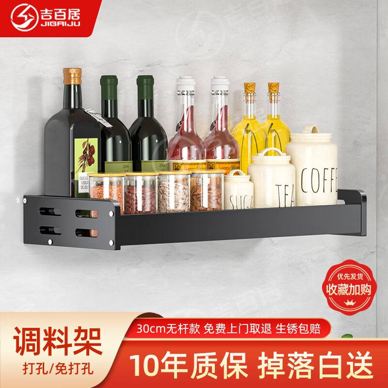 吉百居厨房置物架调料架壁挂免打孔调味品收纳架挂墙式多功能置物