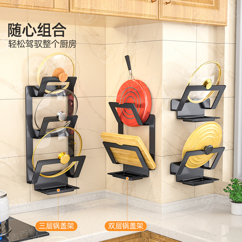 吉百居锅盖架子壁挂免打孔厨房置物架新款多功能放置器放砧板收纳