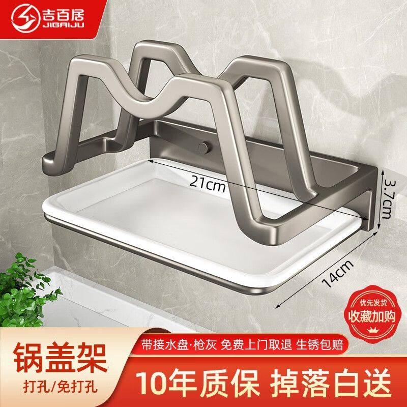 吉百居(jibaiju)锅盖架带接水盘沥水架免打孔壁挂砧板架厨房用