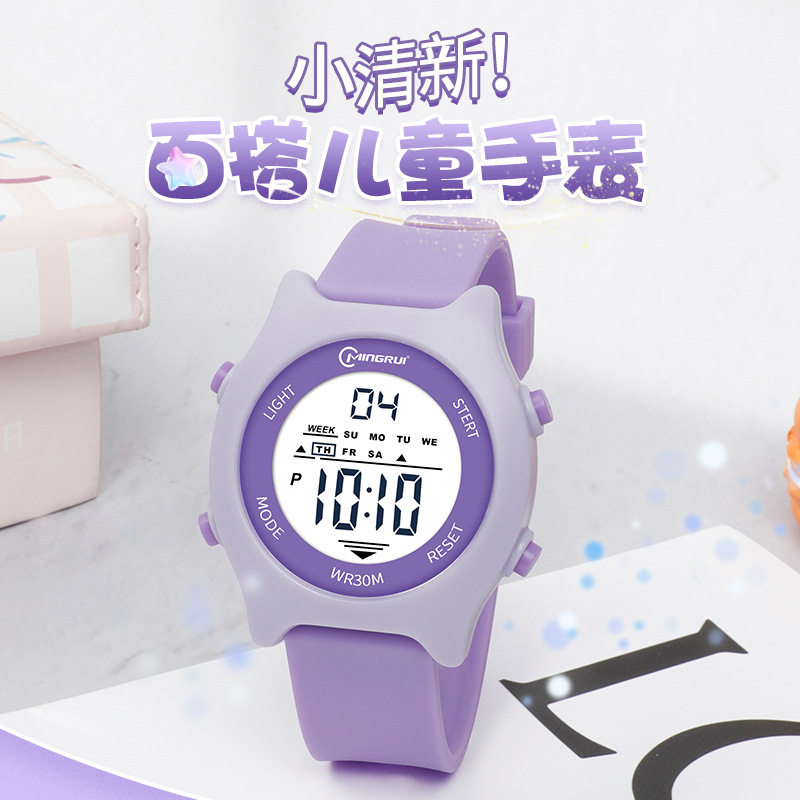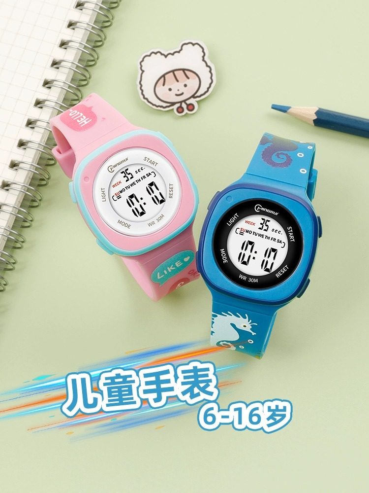 名瑞6-12岁儿童电子表女童幼儿园宝宝防水防摔夜光小学生女孩手表