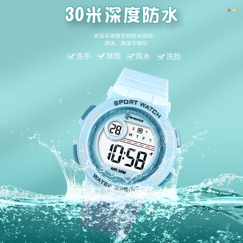 名瑞电子手表女款学生小学初中儿童运动防水电子表间夜光闹钟手表