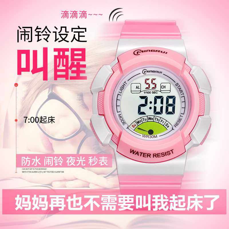 名瑞儿童手表小学生运动电子手表女夜光防水闹钟电子表小女童礼物