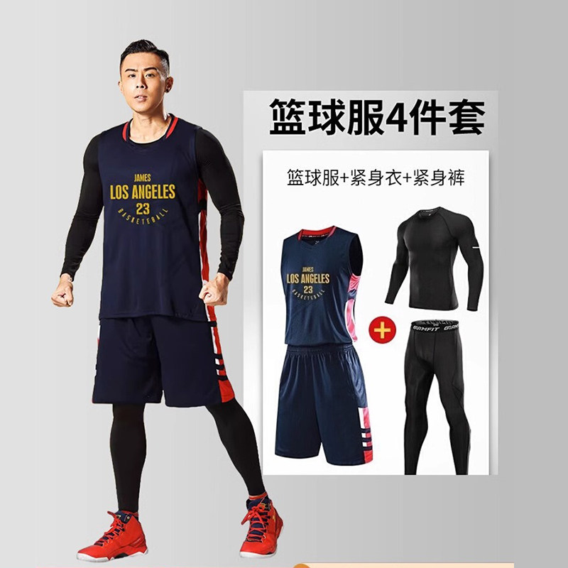 篮球服四件套男打底长袖紧身球衣比赛定制训练队服运动套装秋冬季