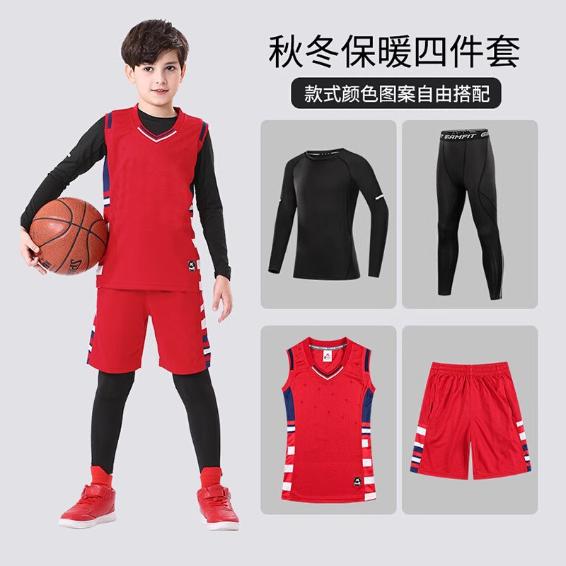 儿童篮球服套装男小学生四件套队服定制女童球衣印字篮球衣秋冬季