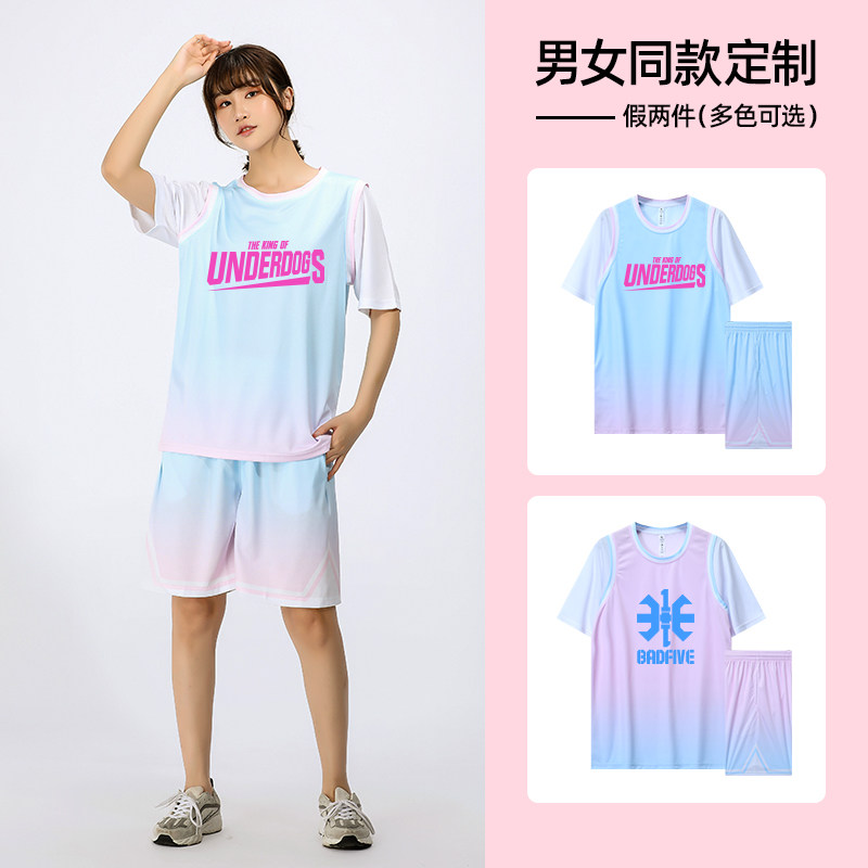 篮球服男女套装夏季学生假两件短袖女生比赛运动球衣训练队服定制