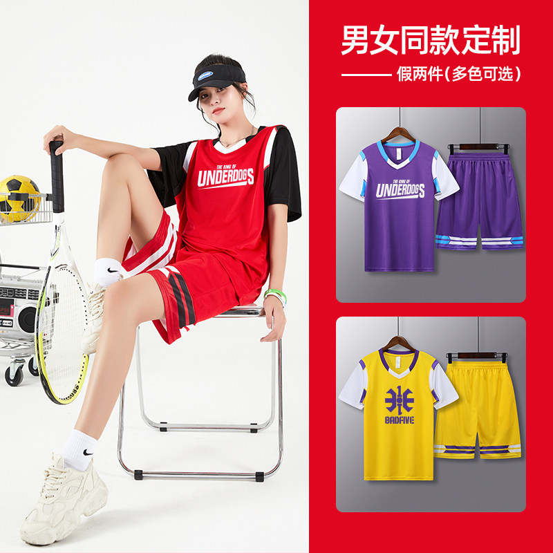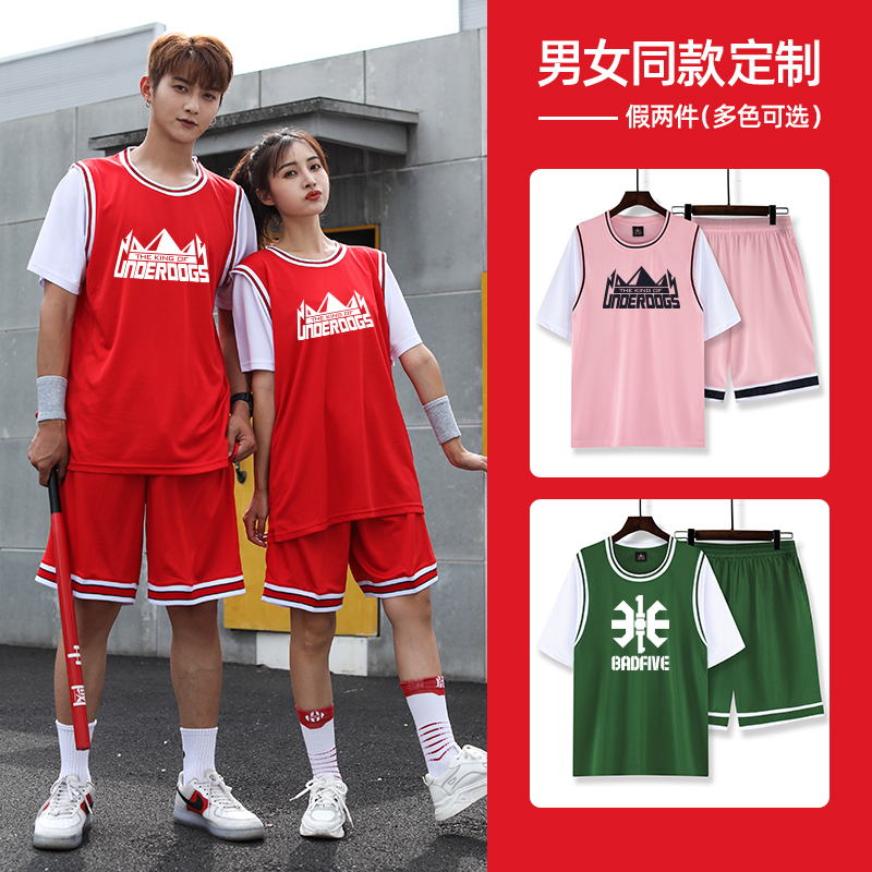 篮球服夏季男女套装学生运动背心定制比赛训练队服短袖假两件球衣