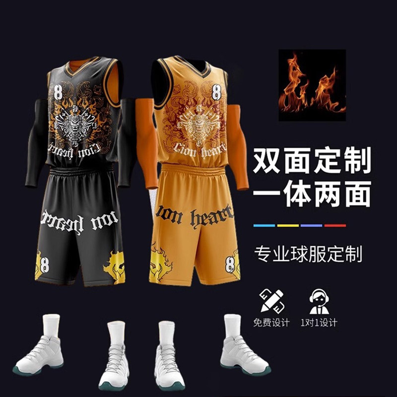 双面穿篮球服套装男定制一套队服比赛团队训练服订制背心球衣冬季