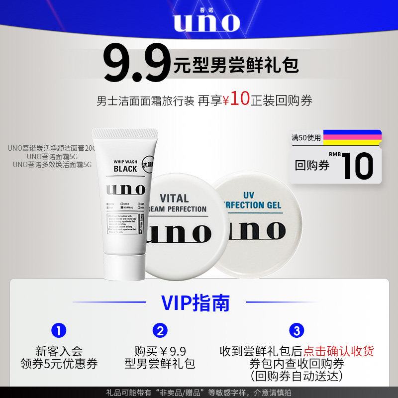 【付邮试用 尝鲜礼包】UNO吾诺 男士洁面面霜小样三件套组