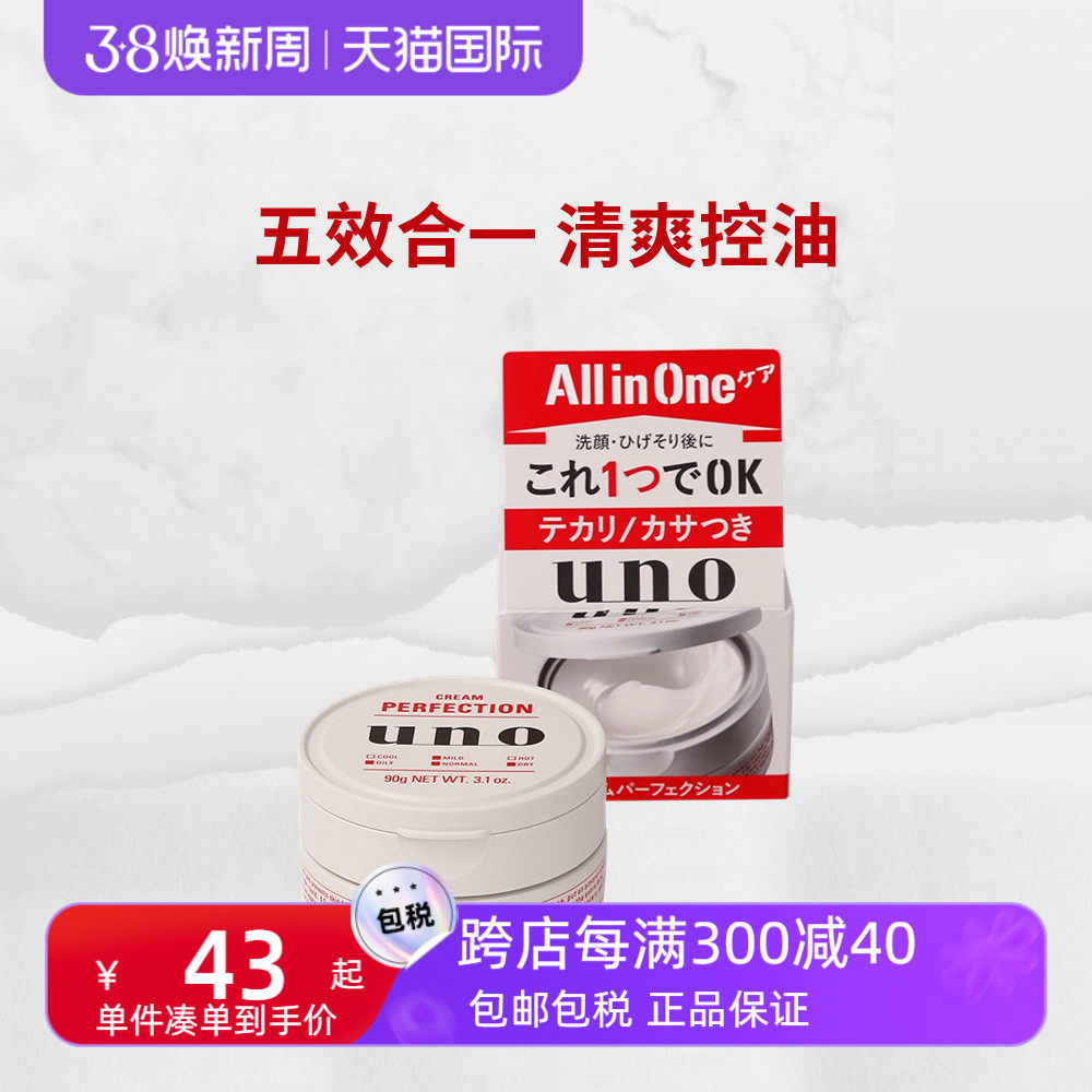 新款日本UNO吾诺男士五合一多效防shai保湿补水面霜清爽控油90g